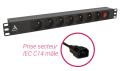 Bandeau 19 1U, 6 prises FR, disjoncteur 16 A avec différentiel 30 mA : 2,80m de cordon. Câble 3x1,5mm2. Equerre de fixation pour position frontale et murale. Sortie de câble par l'arrière avec presse étoupe. Volet de protection mécanique du disjoncteur. Le bandeau est en aluminium laqué époxy noir mat. Conforme norme CE