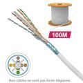 Câble réseau cuivre CAT6 FUTP, LSZH paires : 1x4, 100 OHMS AWG23, conditionnement touret de 100m en gaine blanche.