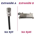 Ces cordons permettent de connecter la gateway Mitel EX/GX vers un répartiteur de type réglette RCAF. Le cordon est équipé de 16 RJ11 à une extrémité, l'autre extrémité est cablée sur 2 réglettes de type RCAF prêtes à être insérées sur le répartiteur. Ce câble réseau fait une longueur de cinq mètres. Retrouvez toute notre expertise en câblages cuivres parmis nos services.