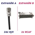Ces cordons permettent de connecter la gateway Mitel EX/GX vers un répartiteur de type réglette RCAF. Le cordon est équipé de 24 RJ11 à une extrémité, l'autre extrémité est cablée sur 3 réglettes de type RCAF prêtes à être insérées sur le répartiteur. Ce câble réseau fait une longueur de dix mètres. Retrouvez toute notre expertise en câblages cuivres parmis nos services.