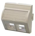 Le Plastron incliné 2 entrées 45X45 PLATINE RESEAUX® dispose de deux volets de fermeture automatique et est doté de deux ergots pour être encliqueté dans un support mural ou goulotte ou boîte. Il est tout en PVC blanc. Deux portes étiquettes sont intégrés au plastron et munis d'une étiquette blanche protégée par une lunette plastique transparente. Des inserts de couleur encliquetables sont fournis. Ce plastron s'utilise avec des connecteurs sans volet. A cet effet nous préconisons l'utilisation du jack COCCINELLE® de la gamme PLATINE RESEAUX®. Compatible avec les goulottes de profondeur 50mm.