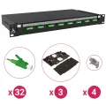 Ce pack tiroir optique 19 pouces avec accessoires est composé d'un tiroir réf.88611, de 32 pigtails, de3cassettes d'épissurage et de 4 clips de fixation pour les cassettes.