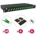 Ce pack tiroir optique 19 pouces avec accessoires est composé d'un tiroir réf.88901, de 48 pigtails, de4cassettes d'épissurage et de 6 clips de fixation pour les cassettes.