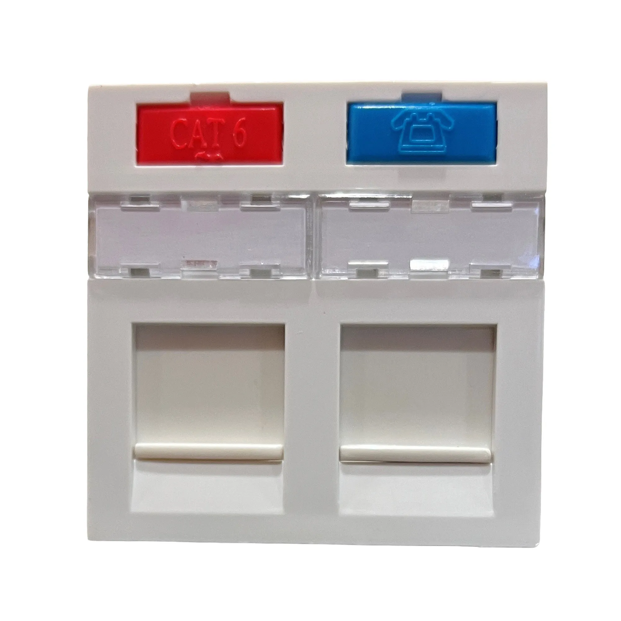 Insert de couleur pour plastron incliné, références 71227, 71228, 71522, 71523. Repères CAT 5E, téléphonie, informatique et CAT 6.