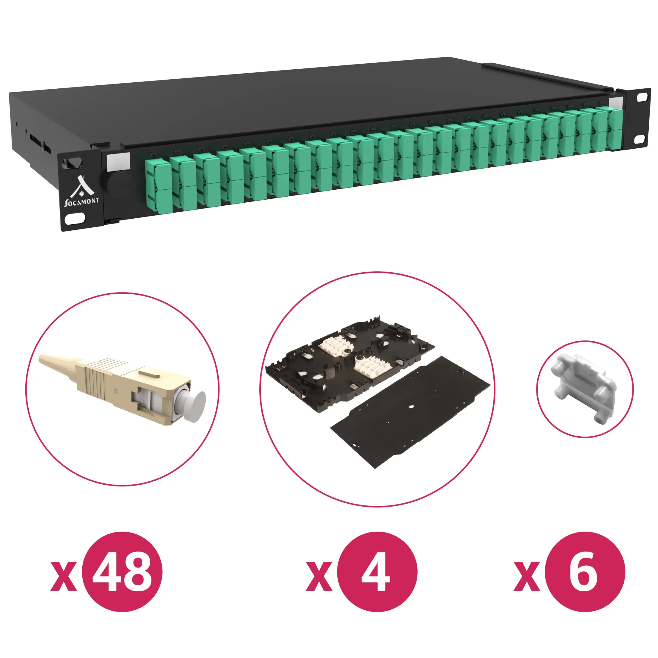 Ce pack tiroir optique 19 pouces avec accessoires est composé d'un tiroir réf.88610, de 48 pigtails, de4cassettes d'épissurage et de 6 clips de fixation pour les cassettes.